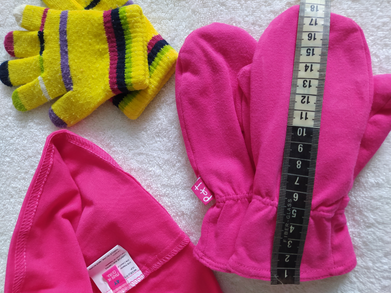Хлопок. Шапочка однослойная и двухслойные рукавички. Канадский бренд. Размер и замеры на фото + перчатки в хорошем состоянии. 150р.