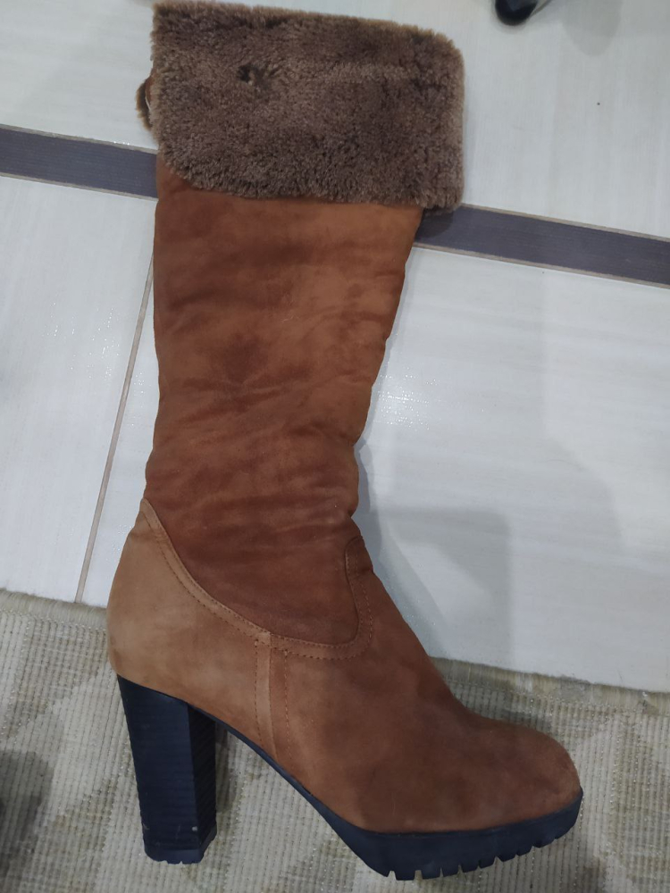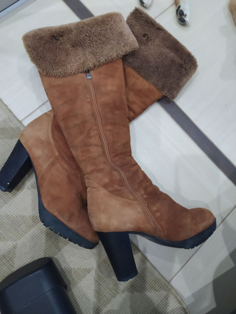 Зимние сапоги р-р38 Натуральная замша, овчина. Удобная, колодка, очень теплые. Отдам до 18.10., после- выброшу