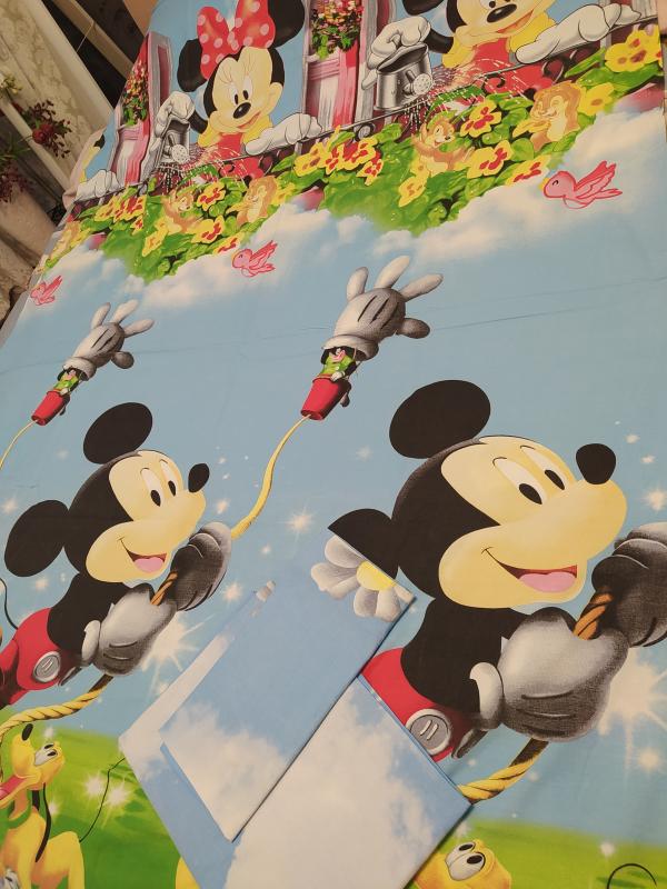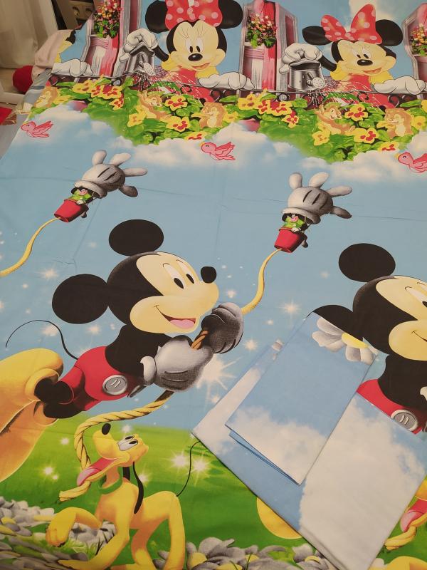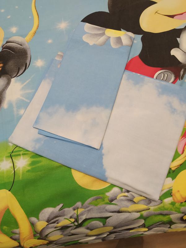 Поплин, 100%хлопок. Фабрика "Принцесса на горошине". Стирали 1 раз. Убрали в шкаф и забыли, были другие любимые комплекты. Сейчас ребёнок "перерос"героев Диснеевских мультфильмов. В комплекте пододеяльник, простыня и наволочка 70/70см. В отличном состоянии, постиран, отглажен Отдам за 500р.
